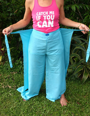 YOu look fabulous in that little pink number! Agree, that is a tricky style to wear and I think you are smart to refashion them...I kind of like the two ties at the hips on the blue pants, maybe it just needs some tweaking.