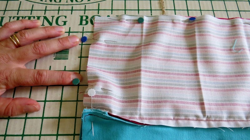 Pin around all 4 edges, leaving a gap of around 10 cm (4") in one side of the inner fabric. You will need this to turn the pencil case right sides out after you stitch.