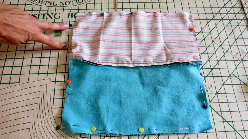 Now pin the rectangles to the zip so the raw edges are around 2.5cm (1") from the outer edges of the width of your pencil case