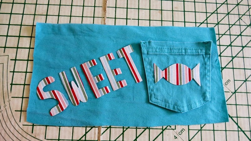Following the instructions on the fusible webbing, iron it onto the back of your co-ordinating fabric. Also take your jeans back pocket as you need to add applique to this.