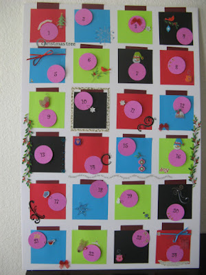 When I was about 11 years old I made my first advent calendar out of matchboxes. I painted all the matchboxes red - inside and out and stuck them all flat onto a strong piece of card covered in Christmas wrapping paper and wrote a number on each box.  I also glued a small bead to each matchbox drawer to open them with. Inside each box was a small piece of tinsel to provide a little 'cushion' for the small chocolates my parents then used to fill the boxes with!