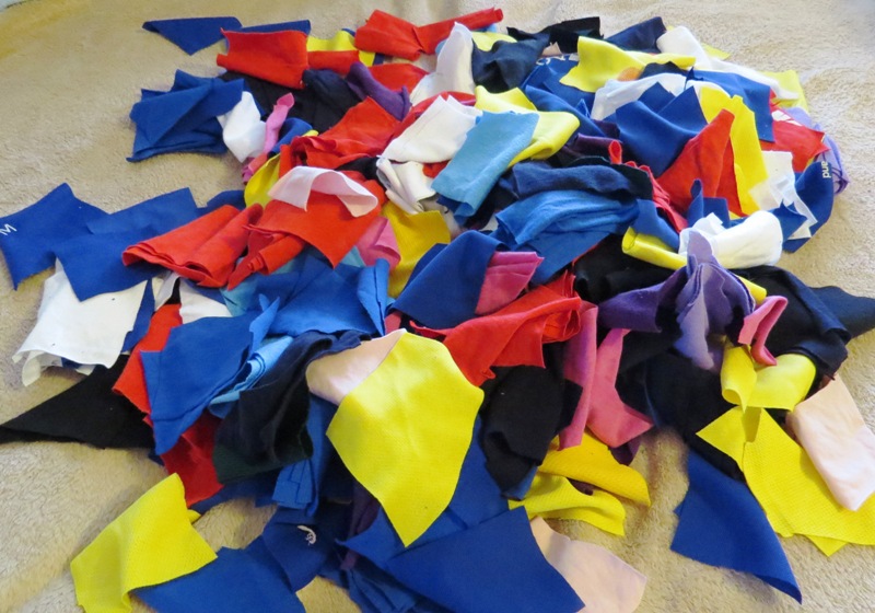 After making a t-shirt quilt last week, to make a start on using up my t-shirt stash, I was still left with a large pile of t-shirt fabric - since the quilt only used the pretty logos and pictures from the fronts of the t-shirts.