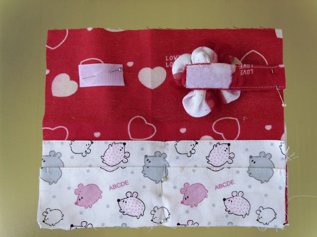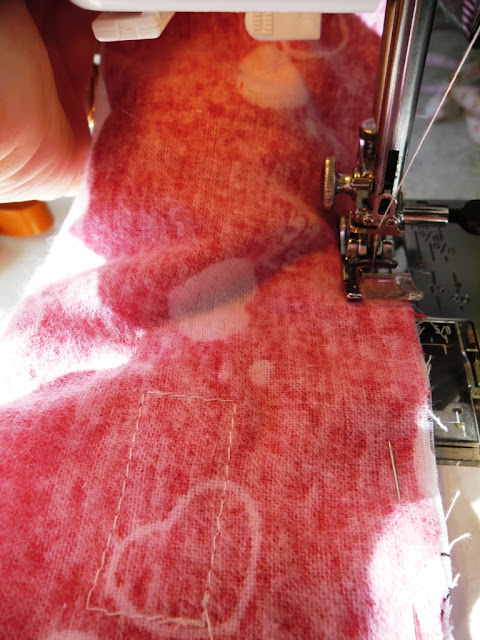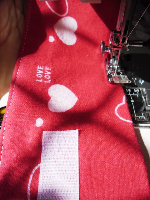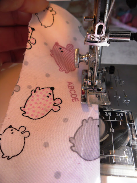 Stitch all the way around the edges - just leaving the gap for turning out. Turn the pencil case right sides out - and pin then stitch the opening closed: