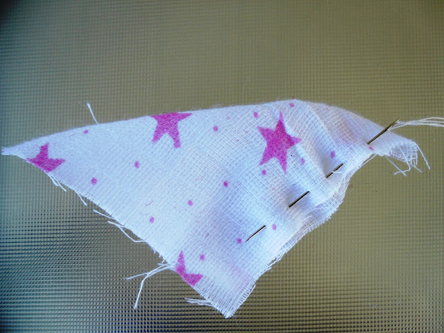 Now you need to pin then sew each coloured piece together in turn. Remember to pin right sides of the fabric together - and use plenty pins to keep the curves in line!