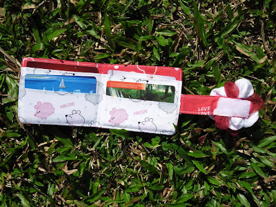 So here goes. You'll need scraps of red, white and green fabric, a zip, some black buttons and some paper and pencil.