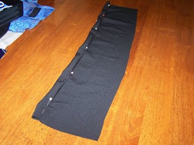 Double turn the long edge over to make the casing for the cord. Pin securely.