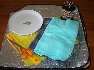 Lay your pretty fabric and plain base fabric out like so. (try not to notice how wonky my cutting is!!)
