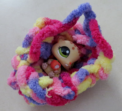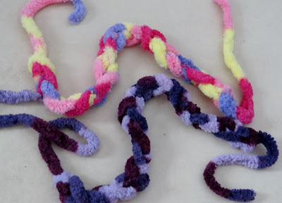 I think we needed to have the lolly sticks sticking up a bit more as she found it a bit tricky with the thick wool - but she persisted to make a purple 'sausage' and said at least we'll know for the next one we make!
