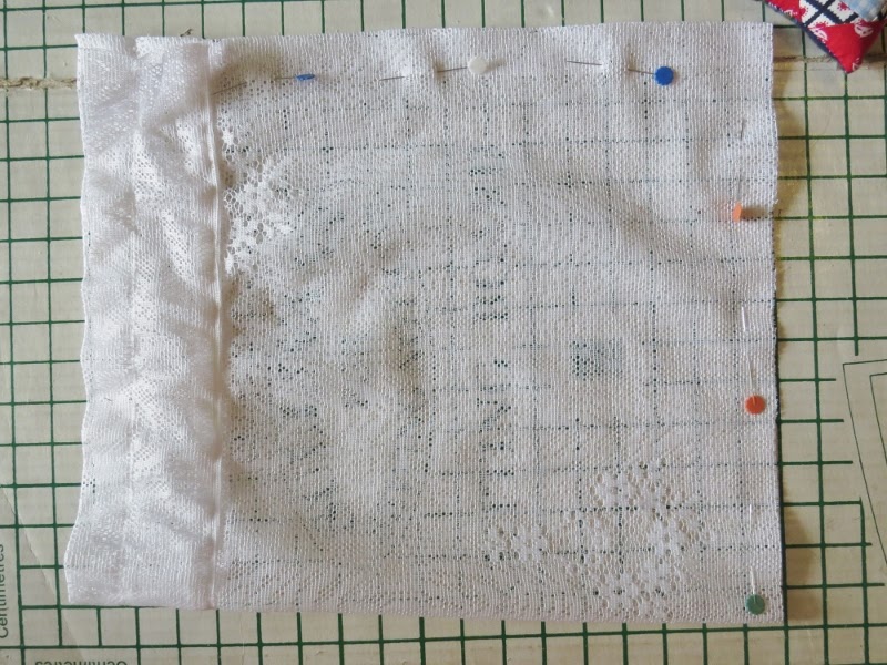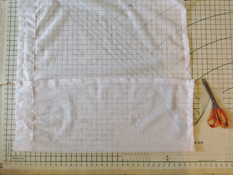 Now if your net curtain is large and you cut pieces that don't have a ready made casing in the form of the top or hem of the curtain, all you have to do to make your own is fold over the top edge of your piece of curtain like this: