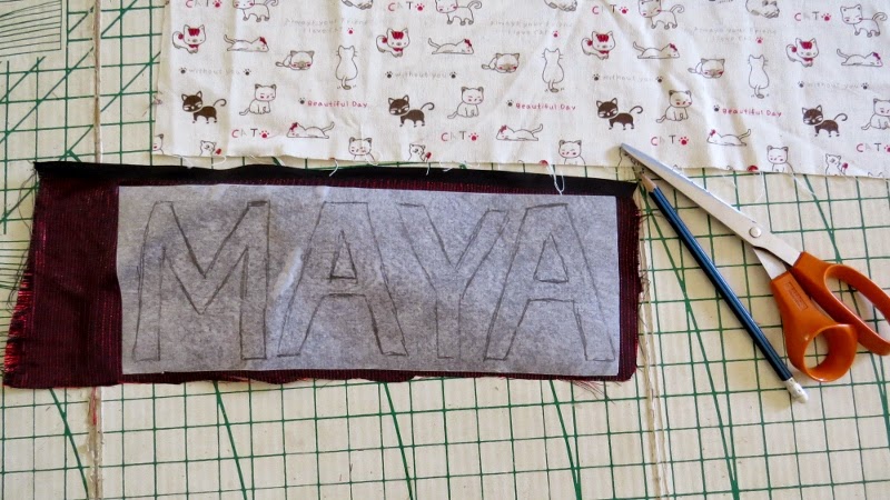 Now write the name you want to applique onto the bag on the back of the fusible webbing.
