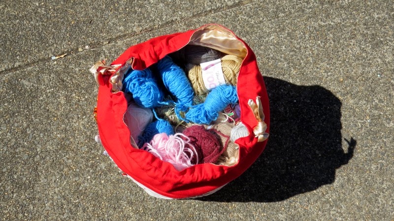 So - leading up to Christmas I visited the charity shops whenever I passed and picked up balls of wool from there of various colours and textures. I also found several crochet hooks of various sizes, so all that I then needed was something to put them all in!
