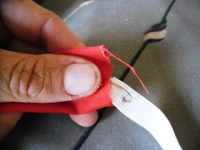 Turn the tube right sides out, then using a safety pin thread your elastic through the tube you just created - making sure to keep hold of both ends of the elastic!